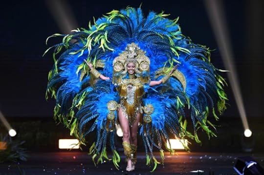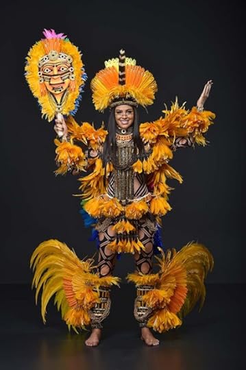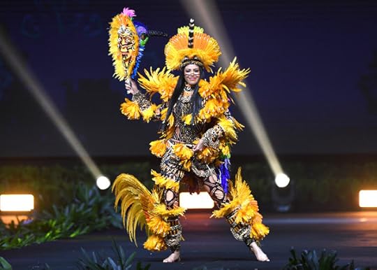 16. Miss Universe Brazil Mayra Dias--Created by the artists of Parintins and designed by Helerson da Maia , the main designer for the festival costumes of the Boi de Paritins, this costume represents a tribute to the indigenous ethnic minorities of the South American nation. It is the representation of an Indigenous person who carries in them the paintings and plumage of all the Brazilian ethnic groups...it was quite an effective "Native" costume for this beautiful South American contestant--Miss Universe 2018 National Costumes Presentation Show, Nong Nooch Tropical Garden, Pattaya, Thailand