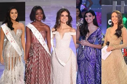 Worldly Gowns--(L to R) Miss World Thailand Nicolene Limsnukan, Miss World Uganda Quiin Abenakyo, Miss World Mexico Vanessa Ponce de Leon, Miss World 2014 Stephanie Del Valle, Miss World 2016 Megan Young--Miss World 2018 Finals, Sanya China
