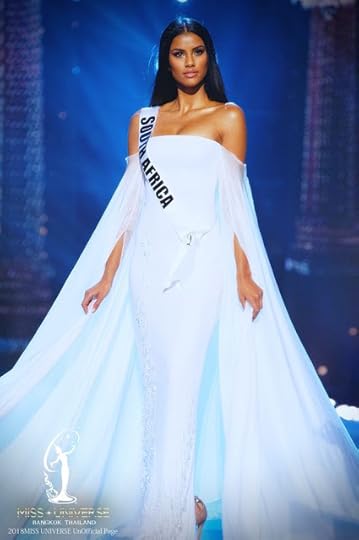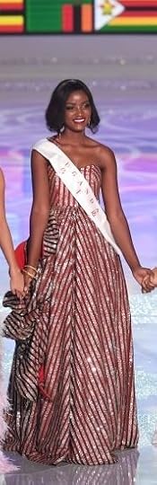 10. Miss South Africa International Reabetswe Sechoaro--I had to add a non-ivory gown in my Top Ten, just because! Miss South Africa International had the best non-ivory one in the entire group of 77 contestants. I thought the gown fit her beautifully and I especially liked the rich-looking sequin-and-lace embroidery work in the upper torso.