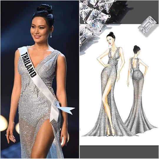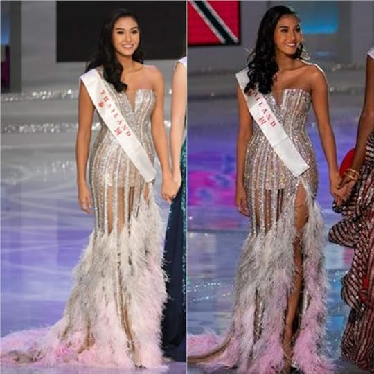 16. Miss Universe Thailand Sophida Kanchanarin--Sophida brought the house down as she made her entrance to the Miss Universe 2018 Evening Gown Preliminary Competition; after all she was at home in front of thousands of her fellow Thai! She wore this gown by Thailand-based design/brand Milin which featured a gorgeous display of hand-sewn crystals, over a silver iridescent base, a side front slit, scooped neckline and fringed back. While quite simple in its design, it had impact.