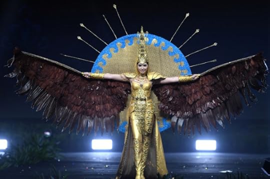 13. Miss Universe Philippines Catriona Gray--Catriona showcased her National Costume in this interesting design. Gray was carrying the island groups of Luzon, Visayas and Mindanao on her shoulders, literally and figuratively. She showcased the lantern on her back, inspired by Pampanga artisans, despite it failing to light up at the last minute. Her headpiece and accessories are an ode to the tribes of the South while her body suit featured authentic tattoo designs by the Pintados. While I thought it was an impacting costume design, it lacked the stage effect that I am sure she--or the designer Jearson Demavivas--intended--Miss Universe 2018 National Costumes Presentation Show, Nong Nooch Tropical Garden, Pattaya, Thailand