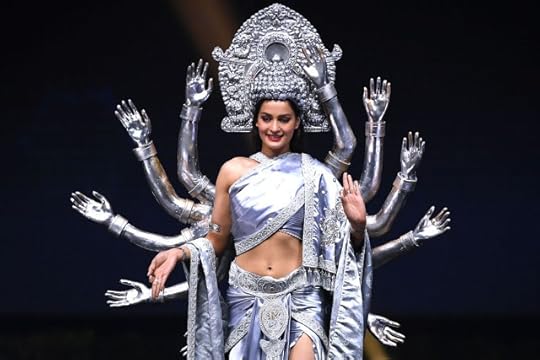 20. Miss Universe Nepal Manita Devkota--Miss Universe Nepal's blue-silver costume represents the Goddess Avalokitesvara who observes or gazes down at the world to relieve the suffering of others, protect people from danger, and grant blessings to the children--Miss Universe 2018 National Costumes Presentation Show, Nong Nooch Tropical Garden, Pattaya, Thailand