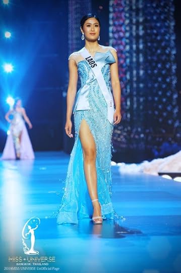 9. Miss Universe Laos On-anong Homsombath--I thought Miss Universe Laos' powder blue gown was pretty, elegant and fit nicely. While one has to be very careful with these "Pageant Betty"-like colors, this design looked expensive and rich and the satin bow in the front added a bit of Alta Moda detail. I was also a BIG fab of the PERFECT nude strappy heels! Thank you.