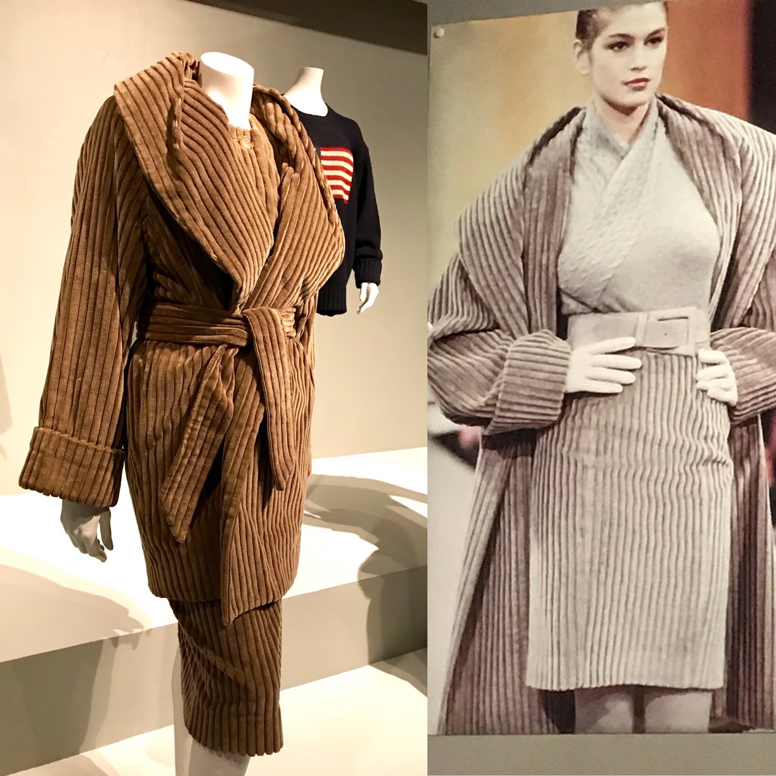Corduroy Chic--Perry Ellis by Marc Jacobs Fall/Winter 1988/1989 outfit and Michel Arnaud Photo of Cindy Crawford--"Capturing the Catwalk: Runway Photography from the Michel Arnaud Archive" Exhibition FIDM Museum