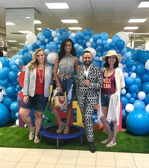 Jumping Up For Macy's Summer Fashion!--Nick Verreos with models Michelle De Leon, Cherie Ditcham and Lizzie Miller-- Macy's Del Amo 2018 Summer Fashion Event, Macy's Del Amo, Del Amo Fashion Center Torrance California
