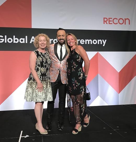 Nick Verreos with Michaela "Mickey" Marraffino (pink top/black pants) my "Shopping Center Diva/Bestie" and one of the Honorees/Award Winners (right photo, center) of the ICSC 2018 Global Awards, Wynn Las Vegas
