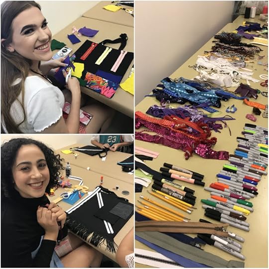 After the presentation from Skid Row Denim & Apparel, the students of FIDM's "3 Days of Fashion" went off to different workshops where they got to customize tote bags as well as pillows using trims, markers, zippers, paper, hot glue...in essence they got to "Make It Work!" and create and decorate all for a WONDERFUL cause. The bags will later be sold and auctioned off with proceeds helping the homeless. Here are some photos of the students busy at work...