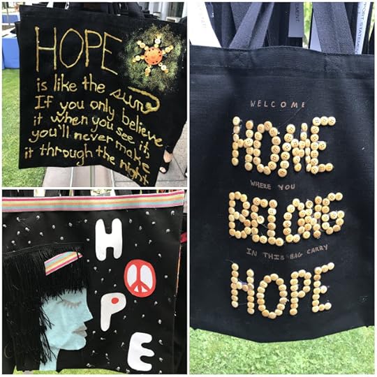 Tote Bags decorated by FIDM LA "3 Days of Fashion" students on display at Hope Park/FIDM Los Angels Campus