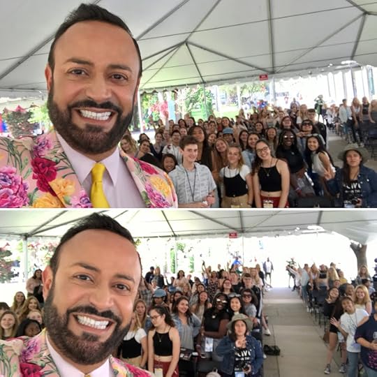 Everyone Smile!--Nick Verreos in a "Group Selfie" with students attending FIDM San Diego "3 Days of Fashion" 2018
