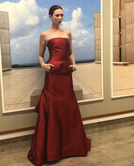 Diva In Red--Model Amanda Fields Bennett in NIKOLAKI Strapless Red Silk/Wool Ziberline Gown--FIDM San Diego "3 Days of Fashion" 2018