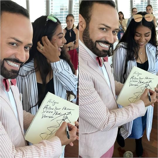 "Follow Your Passion"--Nick Verreos signing an attendee's notebook, FIDM San Diego "3 Days of Fashion" 2018