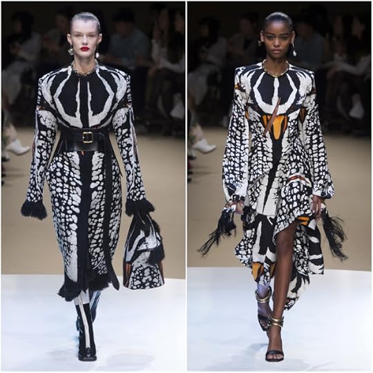 INSPIRATION: Burton said it was about "metamorphosis, extreme nature, soft armor"....a celebration of women's complex natures. Butterflies and bugs were also a starting point for inspiration, as seen in sleeve details and prints.