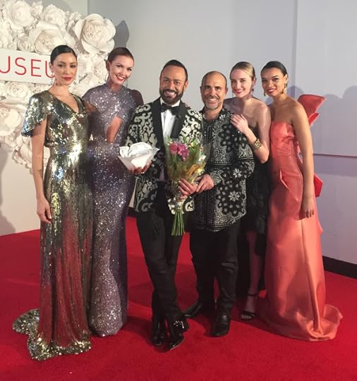 Red Carpet Glamour--Nick Verreos with models in his NIKOLAKI gowns--FIDM Museum