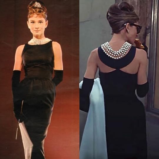 1961 Breakfast at Tifaany's Givenchy Little Black Dress--The dress wasn't so little, in that it was full length, and was designed to highlight her long legs and great shoulders/arms but hide her very thin front neckline.
