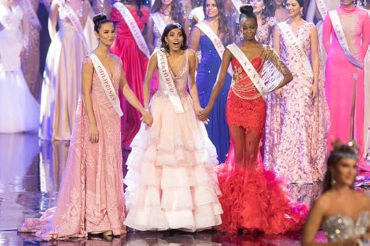 This year, the reigning Miss Universe 2017 Demi-Leigh Nel Peters of South Africa (second from right) attended, helping crown the winner as well as asking a final question during the finals.