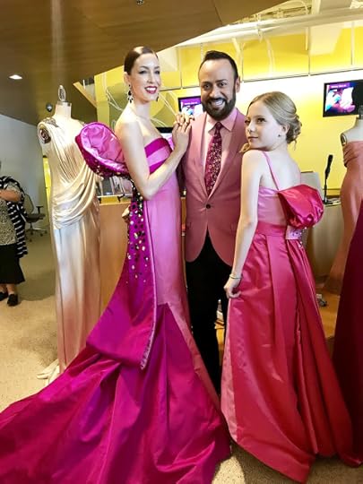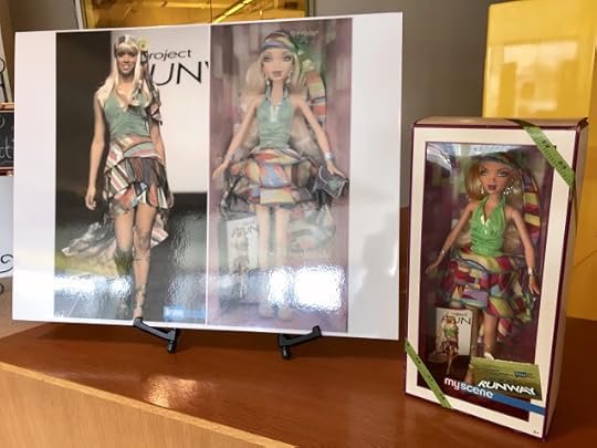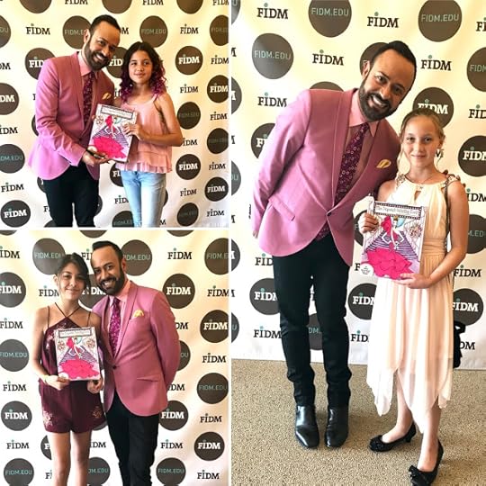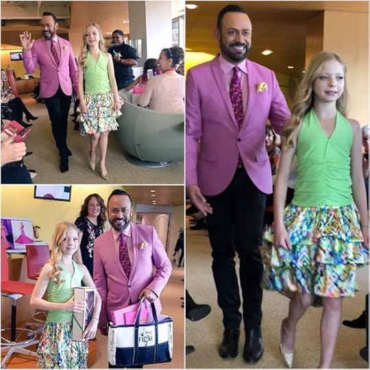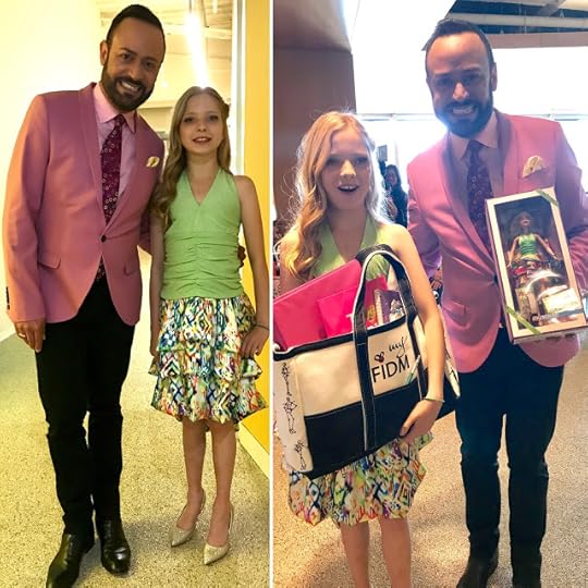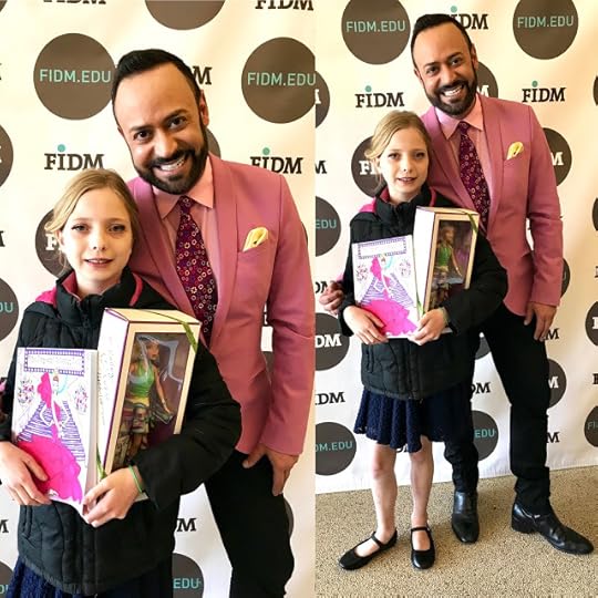 As a surprise to her, we found one of my "Project Runway" My Scene Barbie's on the web (from the "Project Runway" Challenge I won back in Season 2), bought it and then gave it to her as a gift...and of course, I signed it especially for her! In addition, Kelly Richardson Pudgil --an FIDM Grad who designs children's clothing--created custom-made dresses for her inspired by my "Barbie" as well as a pink gown I designed for the 50th Anniversary of Barbie Fashion Show at FIDM DEBUT 2009 ....