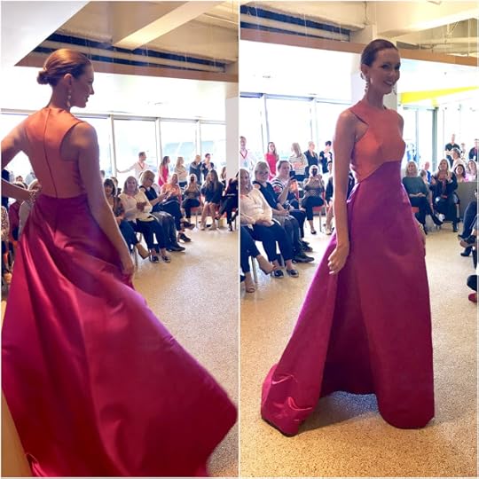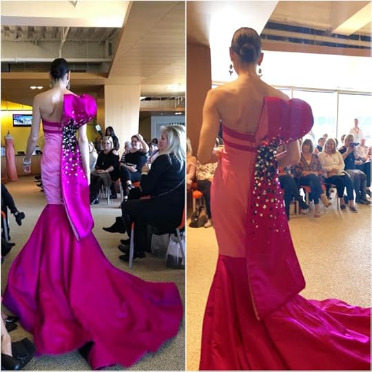 Model Amber Lindauer in NIKOLAKI pink colored silk duchesse strapless gown with Swarovski crystal back bow detail--8th Annual "Fashion With A Passion San Diego" Make-A-Wish San Diego, FIDM San Diego