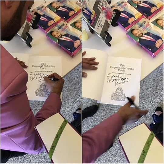 Autograph Time--I personally signed all the winner's "The Pageant Coloring Books"...OF COURSE!!!--FIDM Debut 2018 Educators Luncheon, Grand Hope Park FIDM L.A. Campus