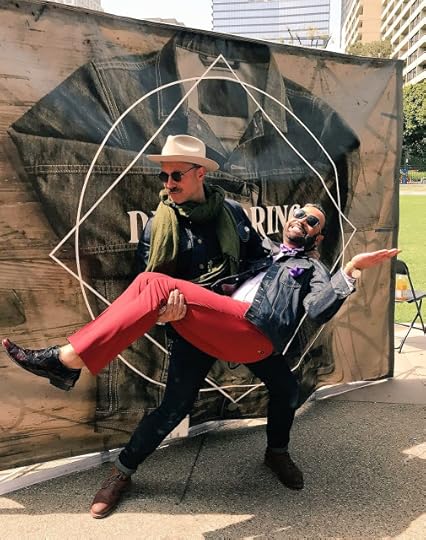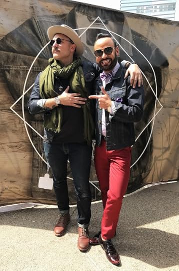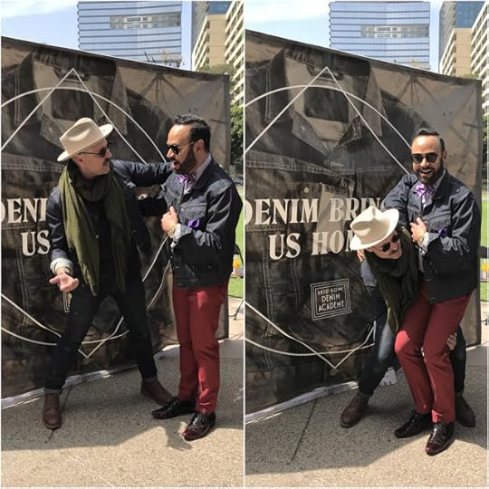 Getting (Denim) Lifted--Nick Verreos with Skid Row Denim &n Apparel's Brad Robinson at the Skid Row Denim & Apparel Pop Op Store--FIDM Debut 2018 Educators Day, Grand Hope Park FIDM L.A. Campus
