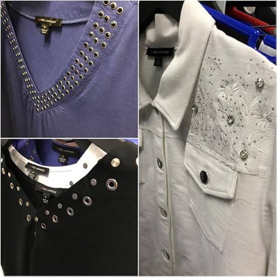 Details, Details, Details--Close-up detail shots of my latest "NV Nick Verreos" QVC UK studded and grommet tops and crystal-embellished "denim" jacket--QVC UK London