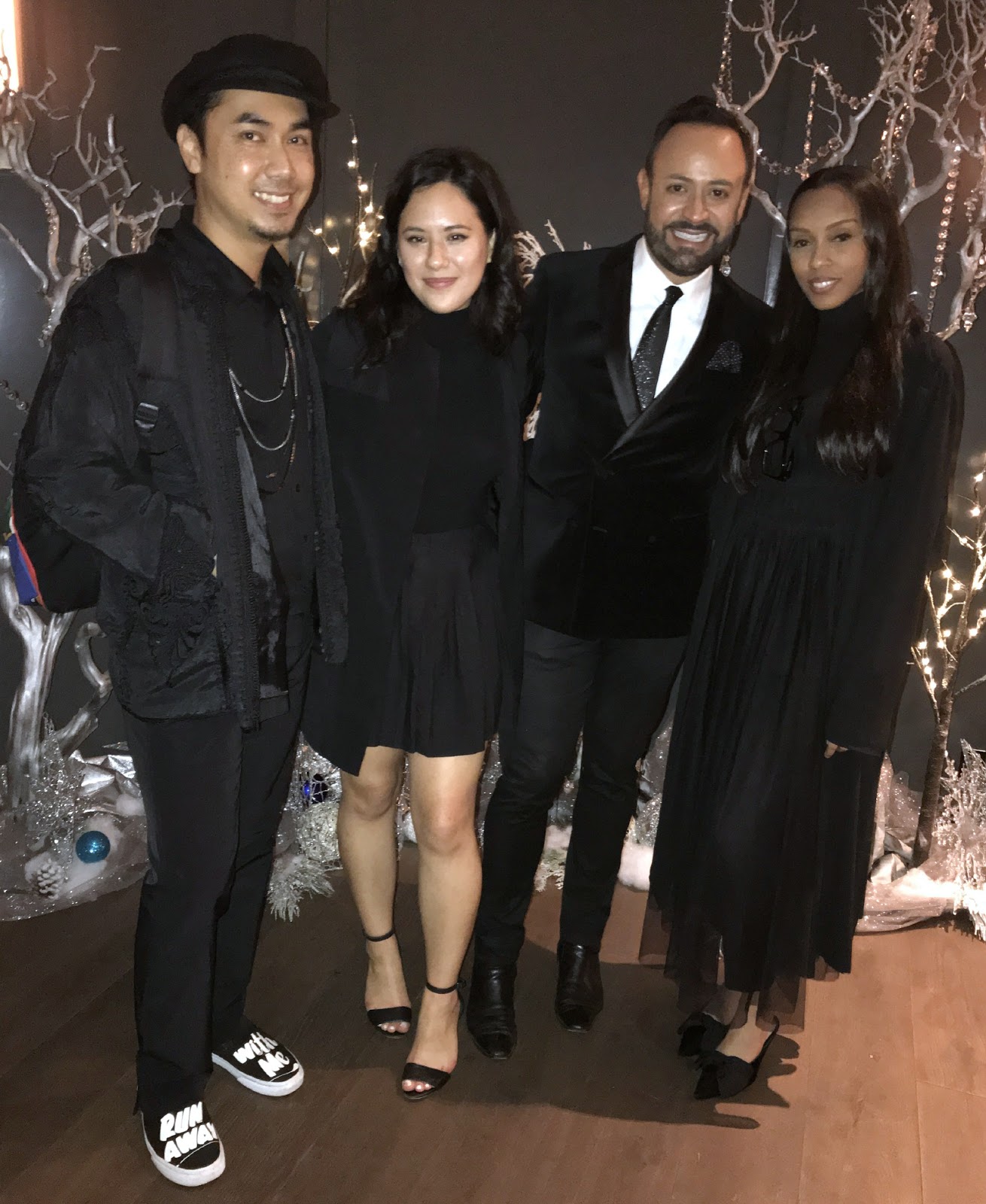 FIDM Illustrators Group Photo: Nick Verreos with (L to R) Nay, Jacklyn Dewenter and Francesca Lake--LUXE Rodeo Drive Hotel, Beverly Hills