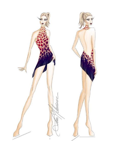 Costumes Sketches: (Clockwise from the top) Miss Grand Vietnam; Miss Universe Thailand; Miss Universe Myanmar; Miss Universe Singapore; Miss Grand Venezuela; and Miss Universe Guyana