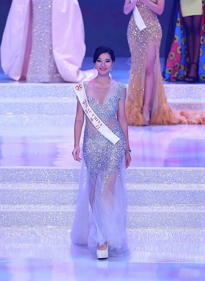 Side Gown Diva: Miss World 2016 Stephanie Del Valle, crowing the finalists at the Miss World 2017 Finals, Sanya China