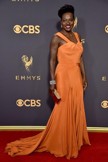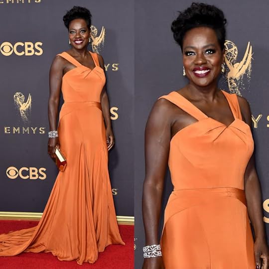 I was looking forward to see what the FIERCE Viola Davis would wear at tonight's 2017 Primetime Emmy Awards; she loves color, style and good fit. Davis didn't disappoint in this terracotta colored fit-and-flare gown from Zac Posen...