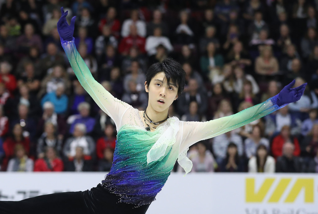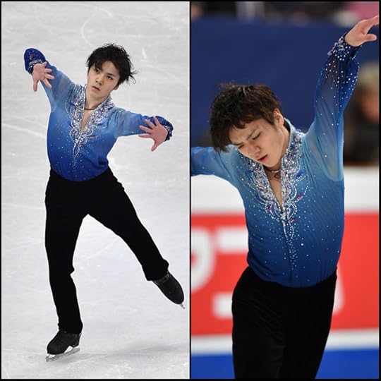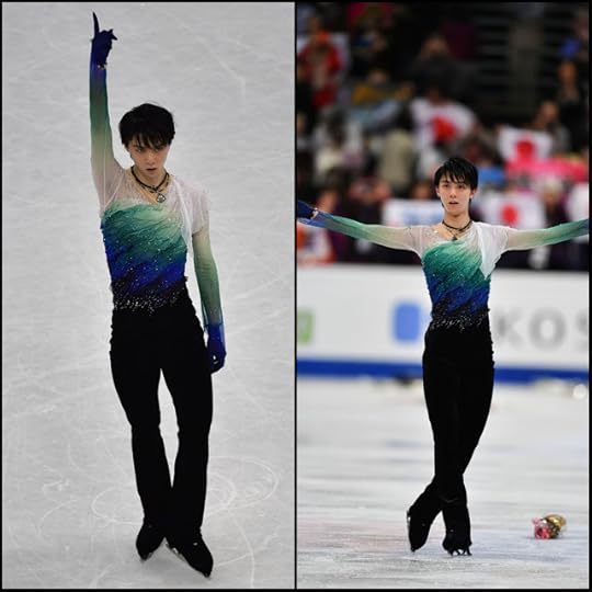 Yuzuru Hanyu Japan Free Skate to Hope and Legacy by Joe Hisaishi--Yuzuru is a big Costume King, when it comes to his competition figure skating ensembles. I love that you know he's going to give you SOMETHING and well, you will not be bored. For this past 2016-2017 Season, he delivered some bold, fun costumes that were attention-grabbing, arguably slightly tacky-licious (it's YUZURU!) and still kind of GREAT! I loved the multicolored draped and gathered stretch chiffon top in his 2016-2017 Free Skate. Look at that photo: It looks easy-breezy but that top probably took many, many hours to get that way. I love how Yuzuru is comfortable with mixing the feminine and pretty, as well as juxtaposing it with the masculine, while also hinting at an old-school "Vintage" figure skating costume vibe.