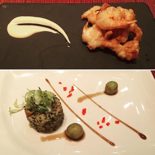 Latin and Asian Infusion: Mixed Tempura Ceviche and Salad Appetizers--"Fuego" Restaurant, Paradisus La Perla Playa del Carmen Resort