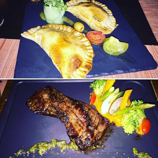Argentinian Delights: Empanadas Appetizers and Skirt Steak with Chimichurri Sauce Main Entree at "The Grill" Restaurant--Paradisus La Perla Playa del Carmen Resort