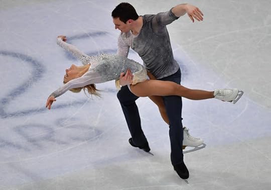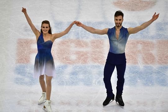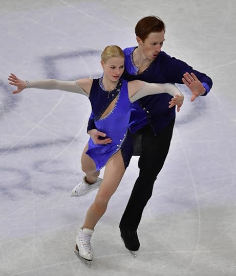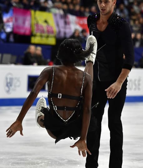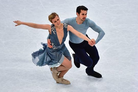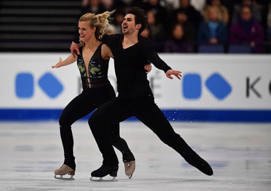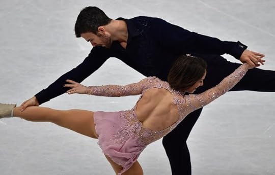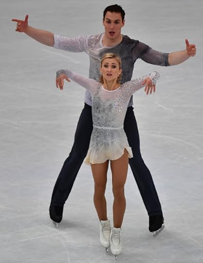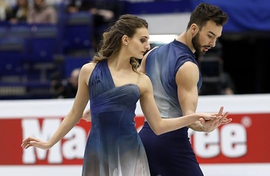 Gabriella Papadakis and Guillaume Cizeron France Free Skate to Stillness by Nest, Oddudua by Aldo Lopez Gavilan, Happiness Does Not Wait by Olafur Arnalds: One of my favorite Ice Dance costumes of the 2016-2017 Season were worn by the OUTSTANDING pair of Papadakis and Cizeron. I think she looked absolutely ethereal and like a Runway Chic Goddess in this ombre-shaded one-shoulder draped costume dress and Guillaume...well, thank goodness that muscle shirt/top is PLUNGING and SLEEVELESS: Tres Bien!
