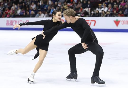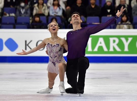 Madison Chock and Evan Bates Free Dance to Under Pressure by David Bowie, Freddie Mercury: I wasn't a big SUPERFAN of their Short Dance costumes this season--they were OK but certainly not in my Top Ten. But, I did like these costumes worn for their Free Dance to David Bowie and Freddie Mercury. The costumes were chic, modern yet retro and still reflective of the music. Her purple costume with asymmetrical fishtail hemline and blue-and-orange sequin detail was vibrant, fun and HOT! I also liked his delicately sequined knit top that (if you were paying attention) also featured a slight asymmetrical hemline (like hers). Sexy, fashion-y and stage/ice perfect! They also changed their costumes from the beginning of the season...and I am glad they did: