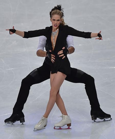 Vanessa James and Morgan Cipres France Free Skate to Sound of Silence by Disturbed and Maxime Rodriguez: There wasn't much to these all black "costumes" from James and Cipres of France. He wore a black top and deep gray-ish skin-tight pants. And Vanessa donned a black Lycra body suit. It was a bit early 80's Disco but I still think it reflected the music and looked slightly directional. I think the most important part was that they looked SUPER SEXY.