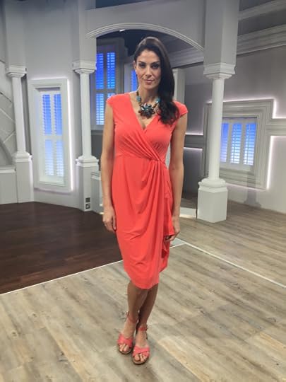 Spring Wrap Dress: Here's one of my newest NV Nick Verreos QVC UK dresses---Side Draped Cascade-front Faux Wrap Dress in Knit Jersey. This one is in a coral color but it's also available in a mini-dotted print! Click HERE to get it UK ladies!