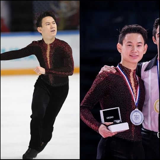Patrick Chan Canada Free Skate to A Journey by Eric Radford: For this Free Skate at the 2016 Grand Prix Finals in Marseille, Patrick changed his costume to this Tie Dye top and pants outfit in top photo above. This was (thankfully) a bit more color than we would ever see from him and a nice change from what he originally wore early in the season for the same Free Skate (lower photo above). While, some may argue that it wasn't much of a "costume" per se (it was just a stretch crew neck long sleeve top and pants) but well...it's Patrick Chan kids! I was happy with this and enough so to warrant him--and this costume--a Best of 2016-2017 spot.