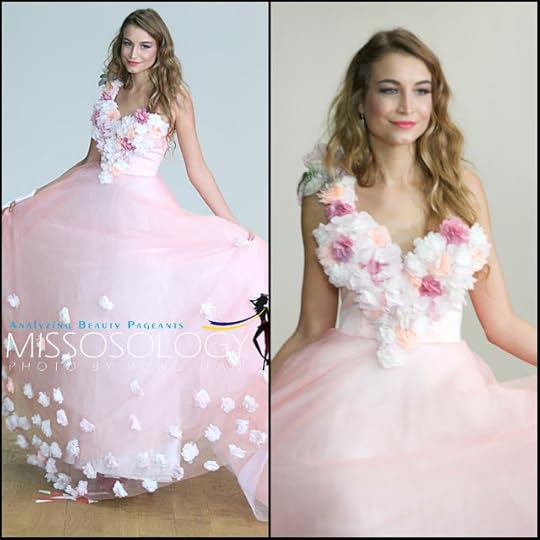 3. Miss Supranational Slovak Republic Lenka Tekeljakova: If I can say something nice, it is that she looks ethereal--or like she belongs in a flower garden. Other than that, this is just a Flower Mess. Pink tulle, flower pedal appliques all bunched together in her breasts...what would make her think this was A) Elegant; B) Cute; C) Gown chic; and D) Appropriate for an international pageant contestant? I can see this on a Flower Day Parade (if there is such a thing) or a Spring Dance Recital but for the Evening Gown Competition of "Miss Supranational"? Nope.