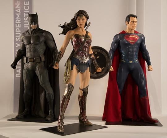 "Batman v Superman: Dawn of Justice"--Costume Designer Michael Wilkinson--Here's some Costume Dish: Wonder Woman's costume was inspired by Greek and Roman Gladiators and there are (supposedly) about 40 "WW's" initials in the costume. Go to the Exhibition and try and find them!--25th Art of Motion Picture Costume Design Exhibition, FIDM Museum