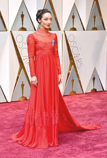 Ruth Negga, the Oscar nominated star of "Loving", wore this beautiful Edwardian-inspired Red Gown from Valentino to the 89th Annual Academy Awards. This was a striking choice for the actress who is making herself known as a Red Carpet Fashionista.