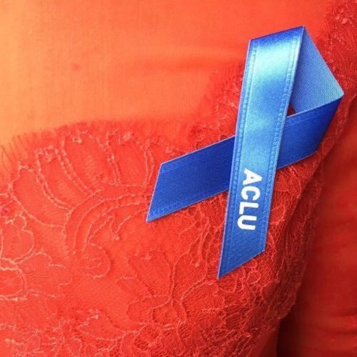 But nothing topped her accessory of a blue ACLU Ribbon. Silently but strongly making the first political statement of the night.