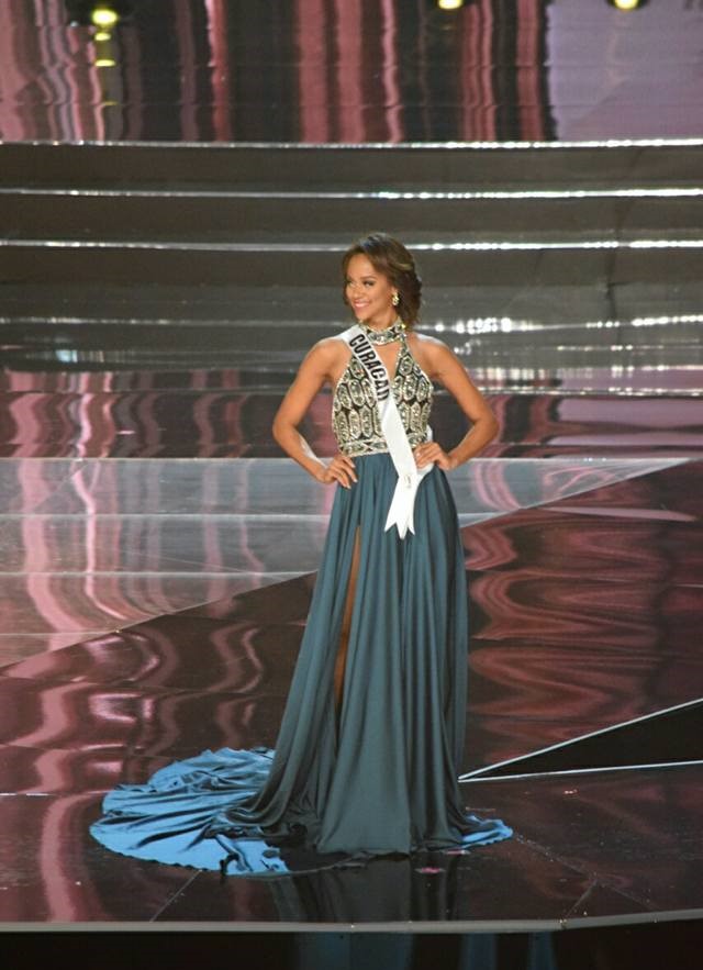 11. Miss Aruba Charlene Leslie: I thought Charlene was one of the Top Standouts of the Miss Universe 2016 Preliminaries. She looked FABULOUS in both Swimsuit and Evening Gown. In terms of the latter, she wore this white column gown that featured bands of sequins juxtaposed with bands of satin. It fit her perfectly and she looked like a Top International Beauty Queen who already had her (Fill in the blank) crown; elegant, classy, on-point. Oh, and her chignon hairstyle was EVERYTHING darlings...so "vintage" Miss Venezuela. Someone trained this woman right!