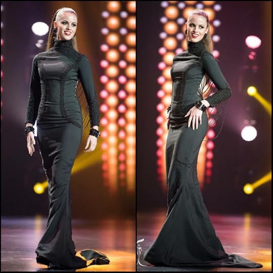 Miss Italy Denise Frigo: Denise seemed like a lot of fun as she was doing her "Evening Gown Competition" walk at "Miss Earth 2016" Finals. She wore this hunter green sequined gown with a very high center front slit, keyhole front and crystal waist detail. I thought it was bit late 70's Disco Fab but the slit was too high and her hairstyle (especially with the curl wispies), too dated. I did love the ankle-strap gold heels.