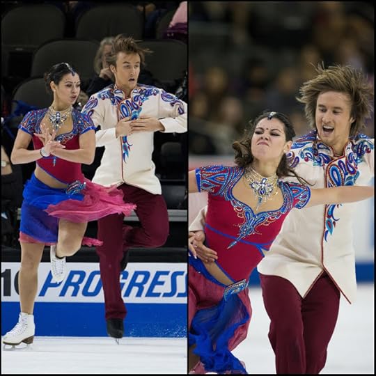 Ang Laga De by Aditi Paul: My ears--and eyes--always perk up any time Ice Dancers do a "Bollywood" theme. Russians Ilinykh and Zhiganshin ventured into India and with costume gusto! I liked these costumes for many reasons: The colors were vibrant and great, the sequin work was fabulous (love her "choker necklace" and his paisley detail!). These looks were Mumbai Hot!