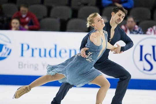 Madison Hubbell and Zachary Donohue of USA Free Dance to I Wanna Dance With Somebody by Bootstrap, Can't Help Falling In Love performed by Ingrid Michaelson, Earned It by Bootstrap: I love these two! Their skating and ice dancing is BEYOND. I wish they would have given me just a little bit more with their costumes. I appreciate her costume's design and delicate mini pleating and flower applique detail but...the color is so bland and really had little impact on the ice. And Zachary...well, he was just whatever; lots of knit jersey. I need just a little bit more kids, costume-wise!