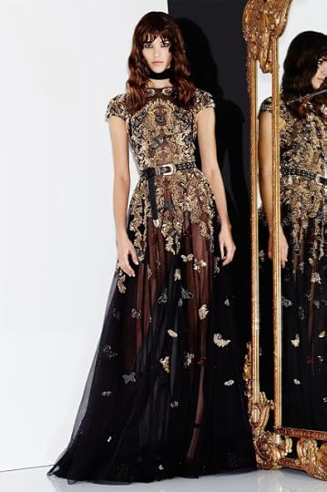 Hala Merheb: Hala wore this stunning black tulle gathered ballgown from Zuhair Murad Ready-to-Wear Fall 2016 Collection. The gown features delicate gold, red and blue leaf and butterfly details slowly cascading down the dress. It is light and airy but still commands gown attention. Part of me wishes, however, that it had layers and layers of under-tulle to give it more volume and impact. But as is, it is still quite beautiful.
