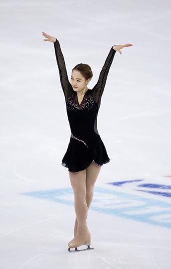 So Youn Park South Korea Free Skate Aranjuez Mon Amour performed by Nana Mouskouri: While I did like the clean silhouette of this costume, I felt it was lacking in some directional design qualities. The point d'esprit sleeves and back were a nice contrast to the all-black and I liked the red and silver crystals but (I cannot believe I am saying this), maybe it needed more crystals?! What do you guys think?