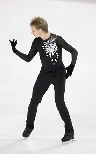 Sergei Voronov Russia Short Program to The Skin I Live In (soundtrack) by Alberto Iglesias: Sergei's costume was a black jersey long sleeve top and pants. I liked the "broken glass" sequin effect on his shirt. It was just the right amount of detail to get my "Great Costume!" attention. I wished he would have continued this detail at the side seam of the pant--using smaller subtler mirrored sequins.