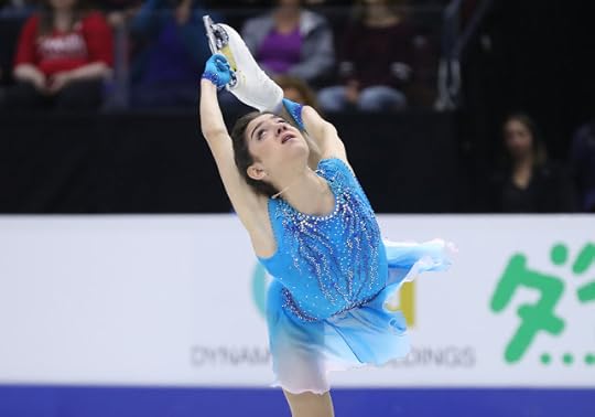 Evgenia Medvedeva of Russia Short Program River Flows in You by Lorenzo de Luca, The Winter by Balmorhea: Evgenia wore this blue ombre-shaded costume featuring crystal and blue beading in the top section. The design made her look like she was a beautiful sea creature from the Mediterranean but the costume itself looked cheap and almost Junior-like.