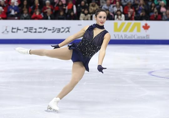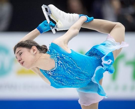 Evgenia Medvedeva of Russia Free Skate to Extremely Loud and Incredibly Close, and Piano Lesson with Grandma by Alexandre Desplat: It's not every day one sees a top ladies' singles figure skater wearing a dress this long as her costume. This design had purple-to-lilac ombre shading and an Empire-waist look that featured sequin embroidery. There was almost a Medieval/Game of Thrones look to it and I liked it.