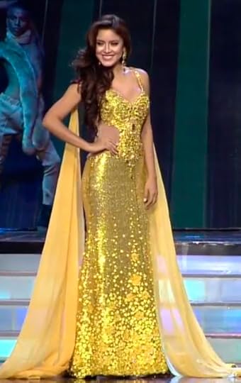 Miss Mexico Itzel Astudillo: Oh Itzel! This was a Mess. Plain and simple. It was soooo Tacky-licious Showgirl and then that slit was dangerously too close to her "Cha-Cha". And to add insult to Gown Injury, her "sisters" looked a bit too "done". Where does one focus? I have no idea. On a good note: I liked the sequins and color of the gown.